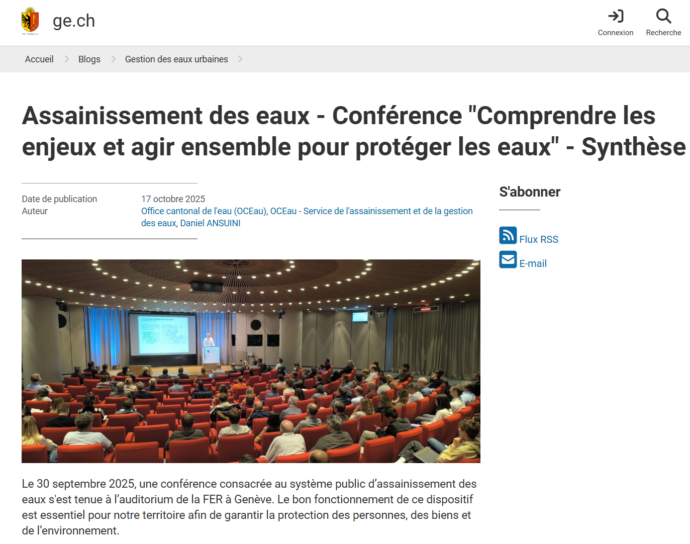 Le 30 septembre 2025, l'OCEau a organisé une conférence consacrée au système public d’assainissement des eaux. Le bon fonctionnement de ce dispositif est essentiel pour notre territoire afin de garantir la protection des personnes, des biens et de l’environnement.